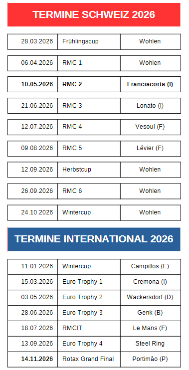 Ab sofort ist die Anmeldung für die ganze Saison Rotax möglich. Piloten welche sich für die ganze Saison anmelden, können